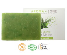 Ce savon est parfumé d'un mélange d'huiles essentielles développé en exclusivité par Aroma-Zone. Mêlant la fraîcheur de la Menthe verte avec les notes terreuses et herbacées du Vétiver, les notes boisées sèches du Cèdre de l'Atlas, les accents boisés poivrés du Genévrier et la senteur suave et chaude de l'Amyris, c'est un parfum original, profond et envoûtant, évoquant force et puissance au naturel, et qui séduira aussi bien les hommes que les femmes. |