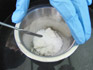 - Produit pulvérulent, irritant des voies respiratoires, des yeux et potentiellement de la peau lors de sa chauffe, à manipuler impérativement avec des gants montants, des lunettes de protection et un masque à poudre.