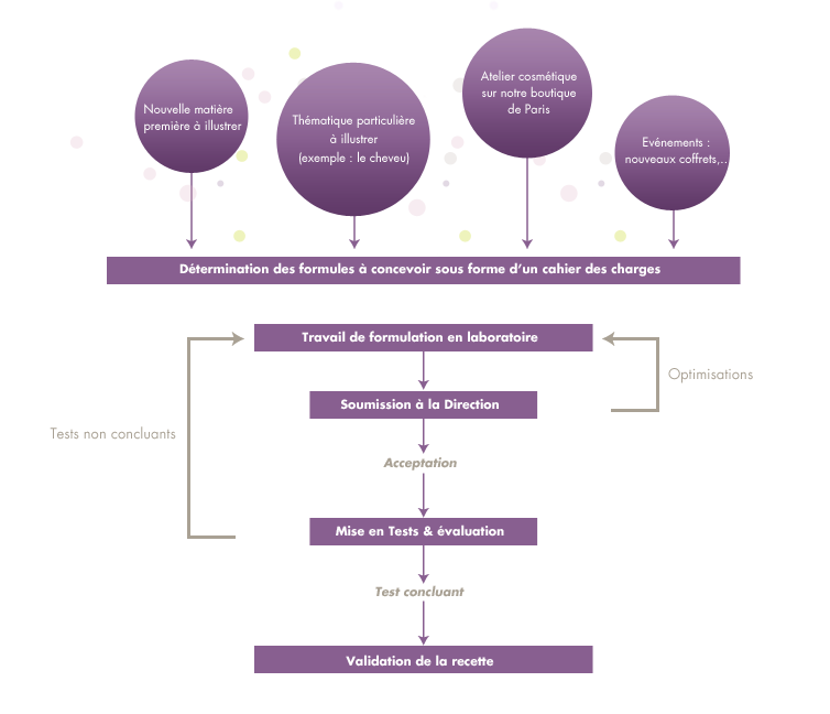 Les formulations s'effectuent sur la base de notre excellente connaissance des matières premières naturelles - base de connaissance maîtrisée par notre Responsable Recherche et Développement, Docteur en Chimie - en privilégiant l'efficacité avec une concentration forte en actifs.