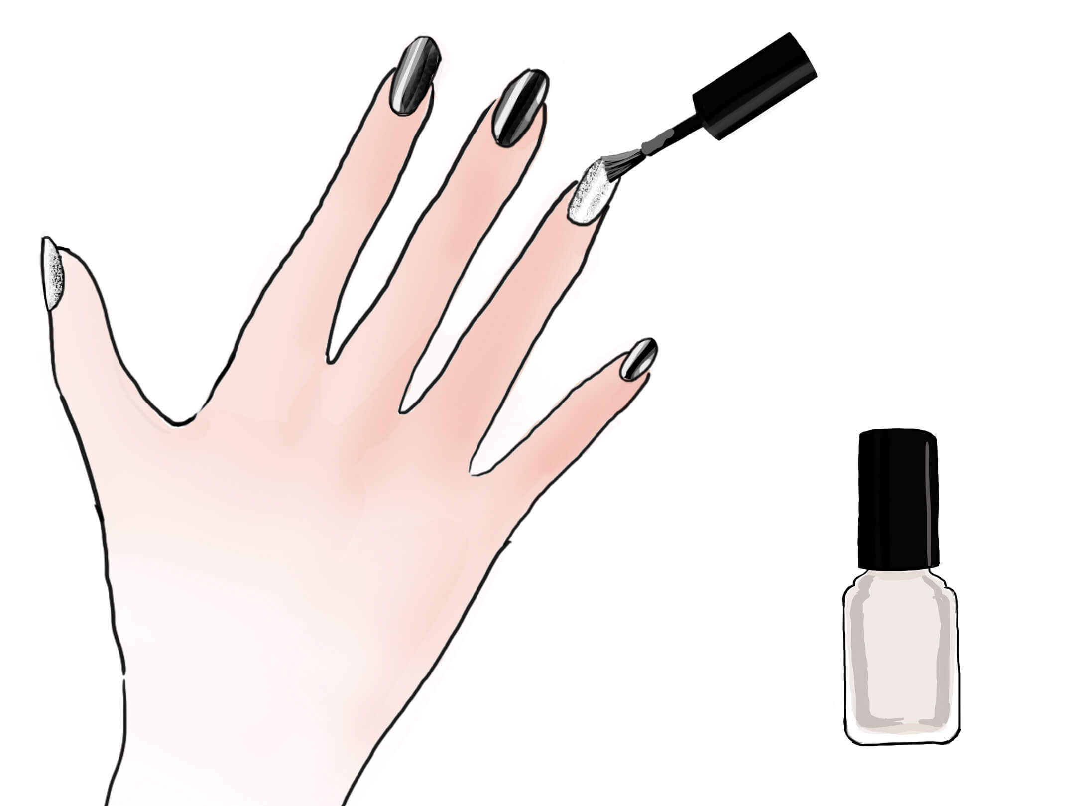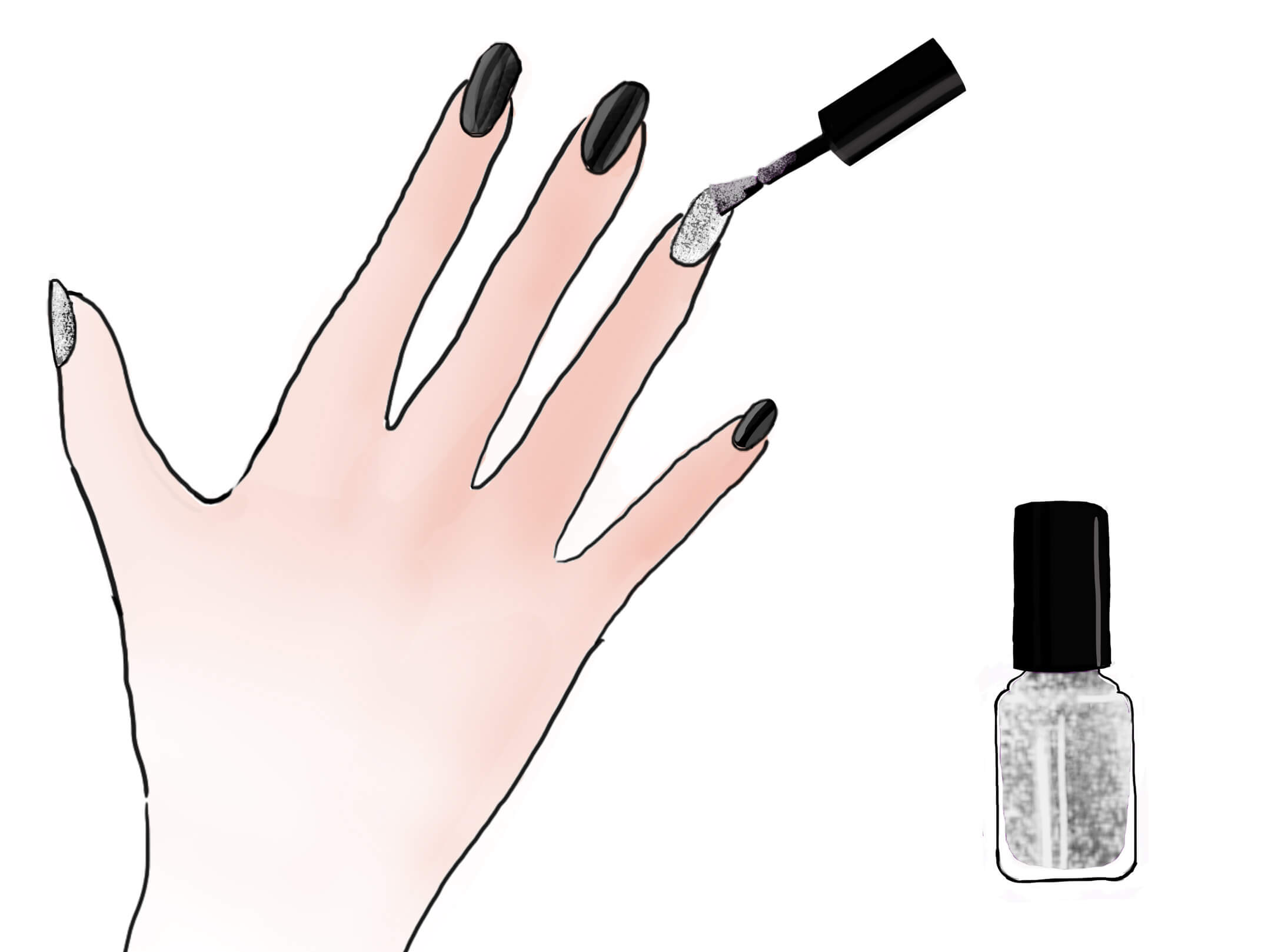 Appliquez sur le pouce et l'annulaire de chaque main 1 couche ou 2 de vernis à ongles Silver light.